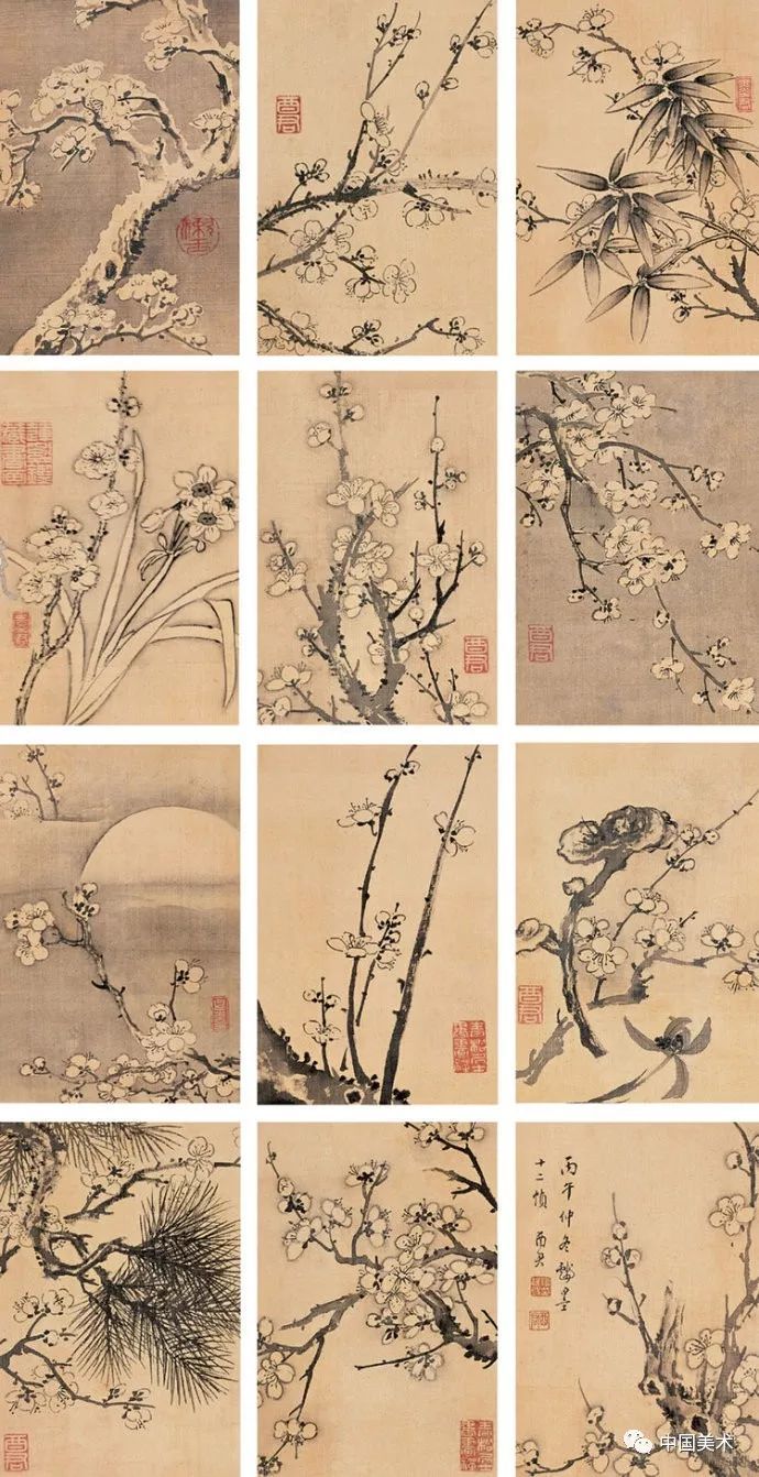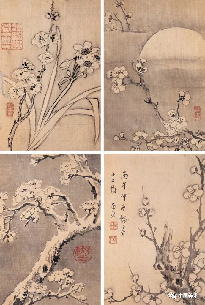 蒋廷锡 丙午(1726年)作 梅花图 册页(十二开选四)尺寸:17×11.5cm×12