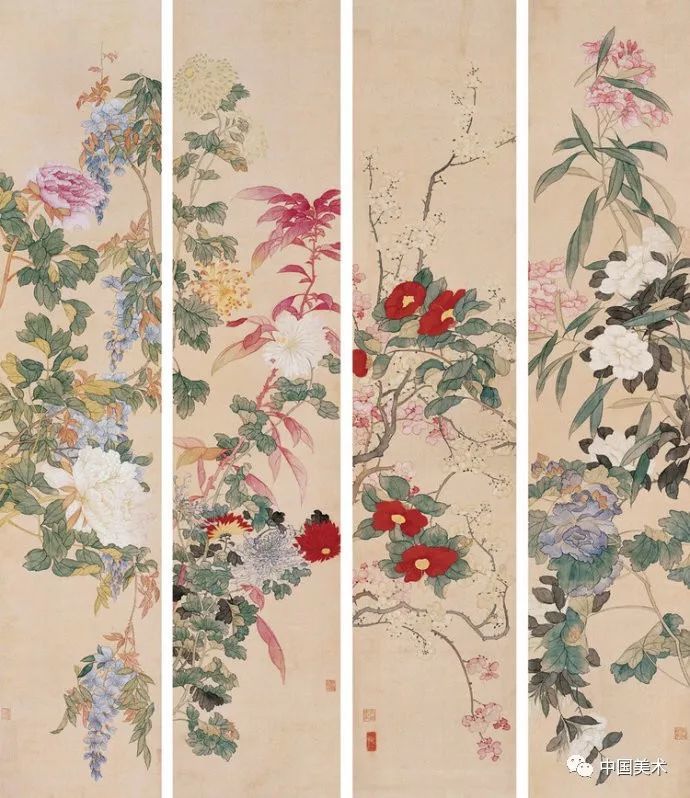 蒋廷锡 溢彩流霞屏 四屏 尺寸:100×20.5cm×4