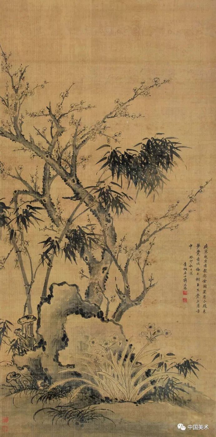 蒋廷锡 癸卯(1723年)作 梅竹水仙 立轴 尺寸:148.5×73.5cm