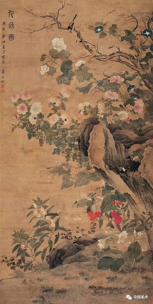 蒋廷锡 1714年作 花卉 立轴 尺寸:98×49cm