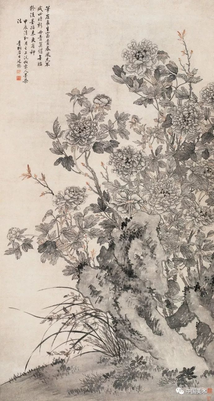 蒋廷锡 1724年作 富贵牡丹 立轴 尺寸:156.5×83.5cm