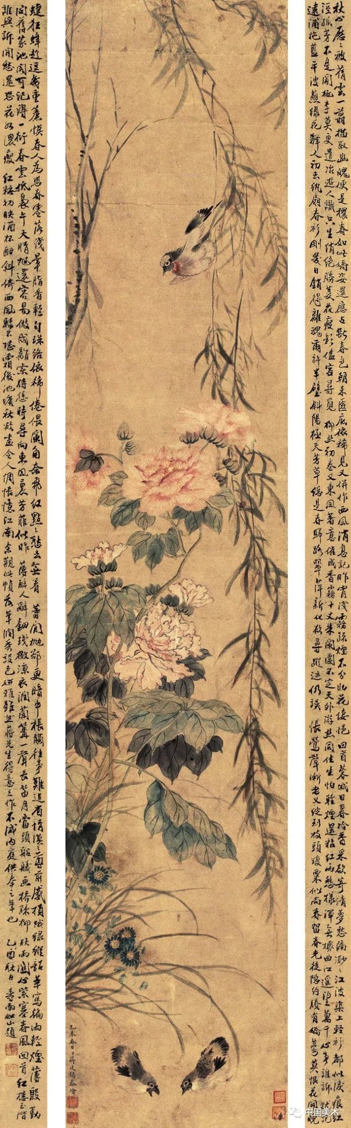 蒋廷锡(款) 花鸟 尺寸:164×49 cm
