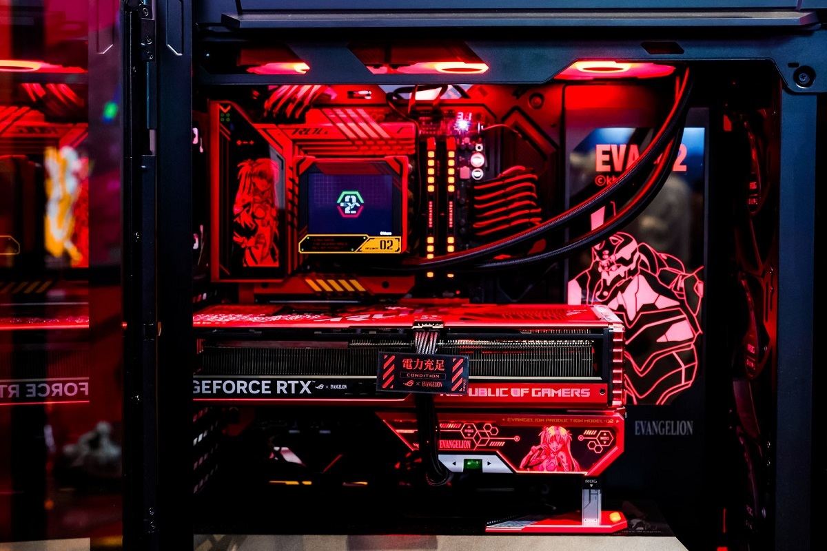在BiliBili World 2023上,华硕电脑开放平台中国区总经理俞元麟先生(普普通通Tony大叔)携手B站知名UP主@老师好我叫何同学及主持人闫紫境GwAwa,为玩家们揭秘了全新新世纪福音战士(ROG×EVANGELION)联名产品。与去年采用EVA初号机的风格和配色不同的是,今年的新品是以EVA二号机的标志性红色涂装搭配。