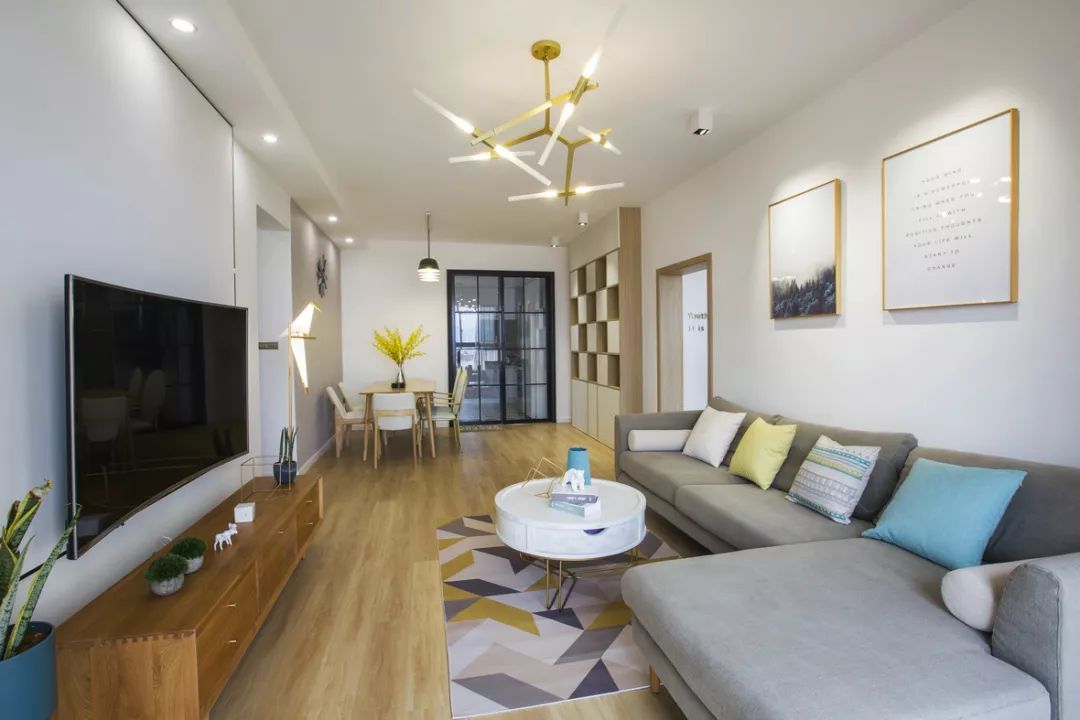 这是一套110平米的简约原木风格装修案例,整体空间以木地板的地面基础,而天花墙面则是以净白的乳胶漆为主,呈现出一种干净自然的空间感;布置上简约舒适的家具软装,使得居住空间充满惬意从容的舒适感。
