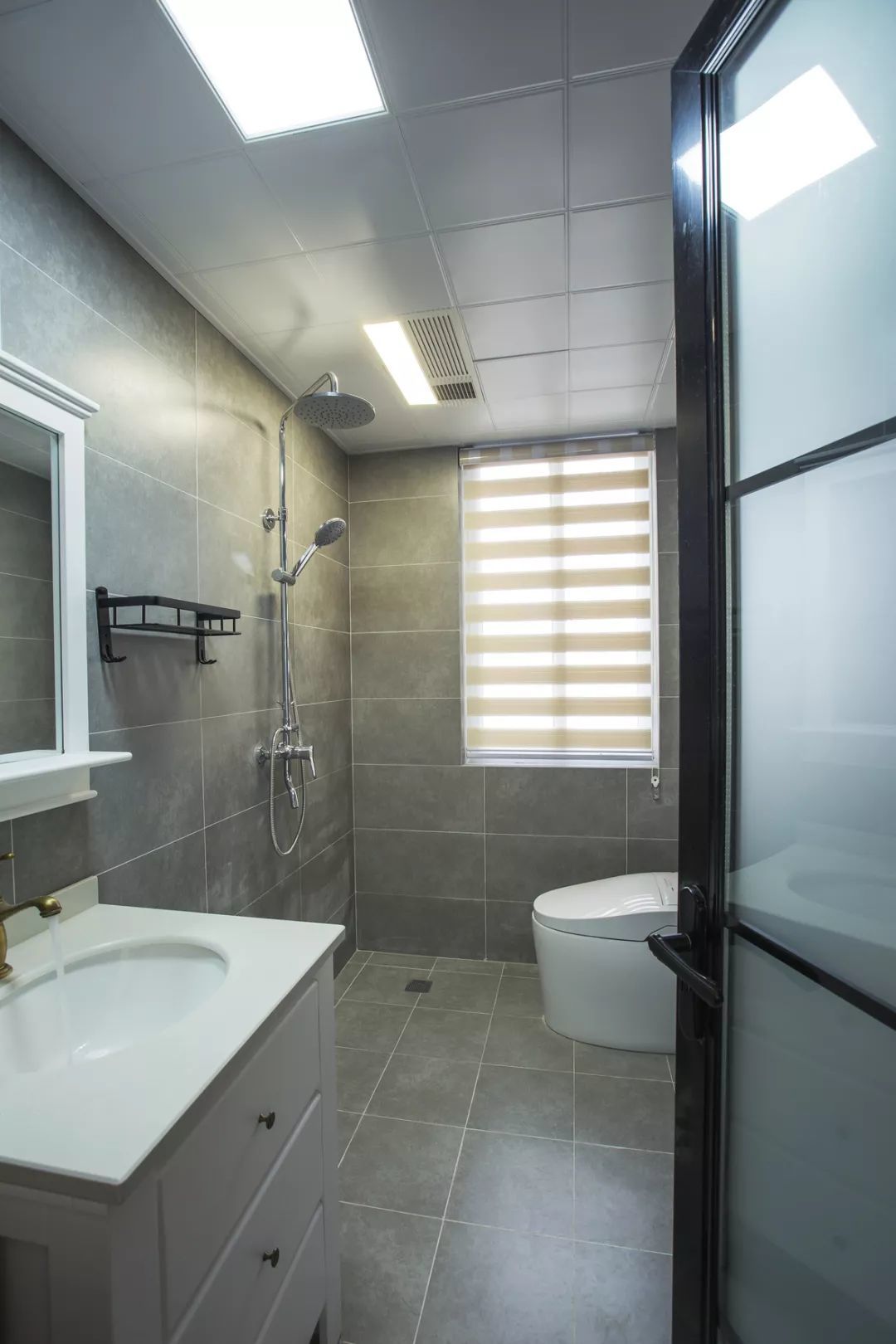 ▲卫生间面积不大,以灰色地砖、墙砖的空间,简约实用为主。