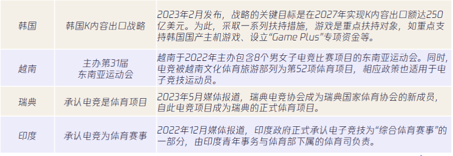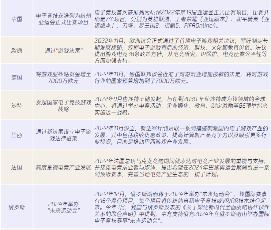 虽然全球不同地区的电竞产业发展水平不均,差异化明显。但整体来说,对电竞产业的态度是积极的,这一点也可以从各国政府相关的表态和政策看出。