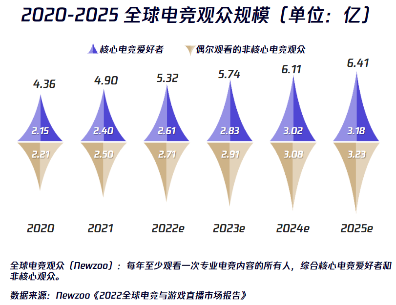 据最新发布的《2023年全球电竞运动行业发展报告》显示,2023年,全球电竞观众规模预计达到5.74亿,营收近18亿美元,未来用户规模和市场规模还将继续增长。