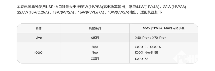 而USB-A接口则最高支持55W(11V/5A)功率输出,此外还坚持兼容44W(17V/4A)、33W(77V/3A)、22.5W(10V/2.25A)、18W(9V/2A)、15W(9V/1.67A)、10W(5V/2A)输出。