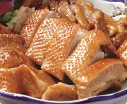 吴山贡鹅又名行密贡鹅,是安徽省合肥市的一道传统名菜,属于徽菜系,因其产自合肥吴山镇而得名。其色泽清爽、香气浓郁、味美醇厚,具有健脾养胃,益气补虚,清热解毒之功效,因鹅喜食青草无污染,鹅不患禽流感,故又称为“绿色保健食品”。