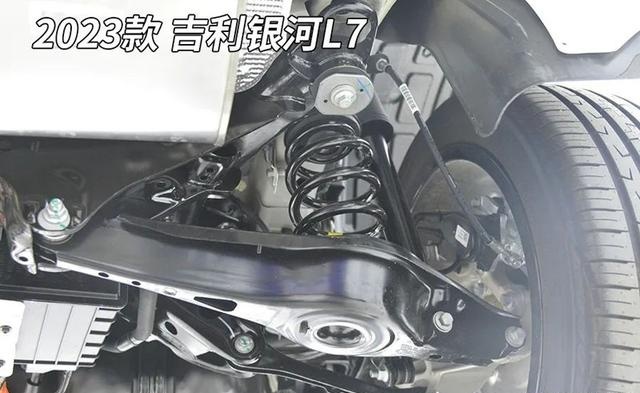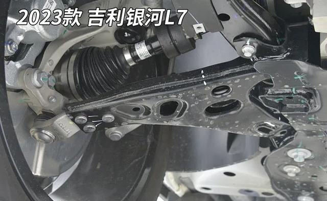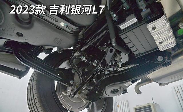 同时,全球性平台的优势也体现在底盘结构和用料上。我们继续通过“拆解对比”往下看。如果只看配置表,你会发现吉利银河L7和比亚迪宋PLUS MD-i均采用了前麦弗逊、后多连杆的悬架结构,看上去好像没有什么差别,但在细节上,就不一样了。