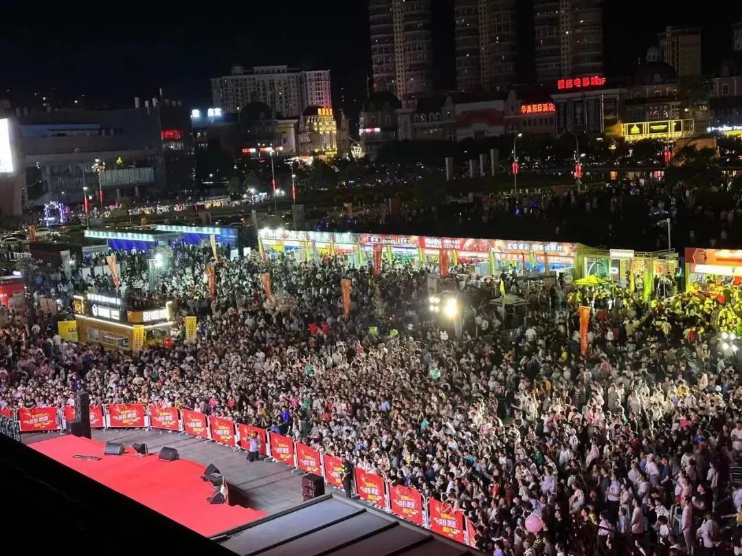 5月19日龙虾啤酒嗨玩节第一天,主会场吸引了6万游客,线上直播观众数达到500万人次。门店门口一直在排队,夜里都没法打烊。小龙虾又一次在蚌埠涌起红色的浪潮。