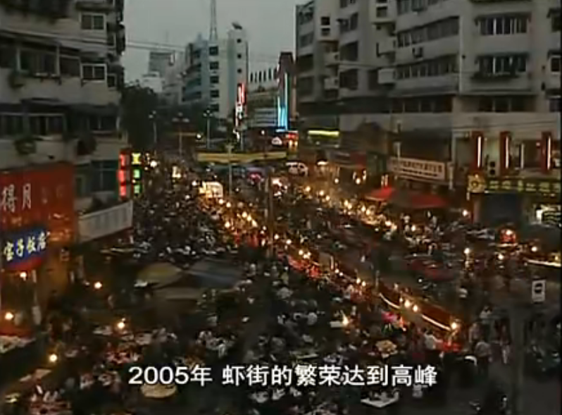 竞争之下是蚂虾街的高速发展,2005年,百十米的蚂虾街,有小龙虾和小吃摊六七十家,发廊迪厅二三十家,高峰时日客流达三四万,虾壳一车一车往外拉。