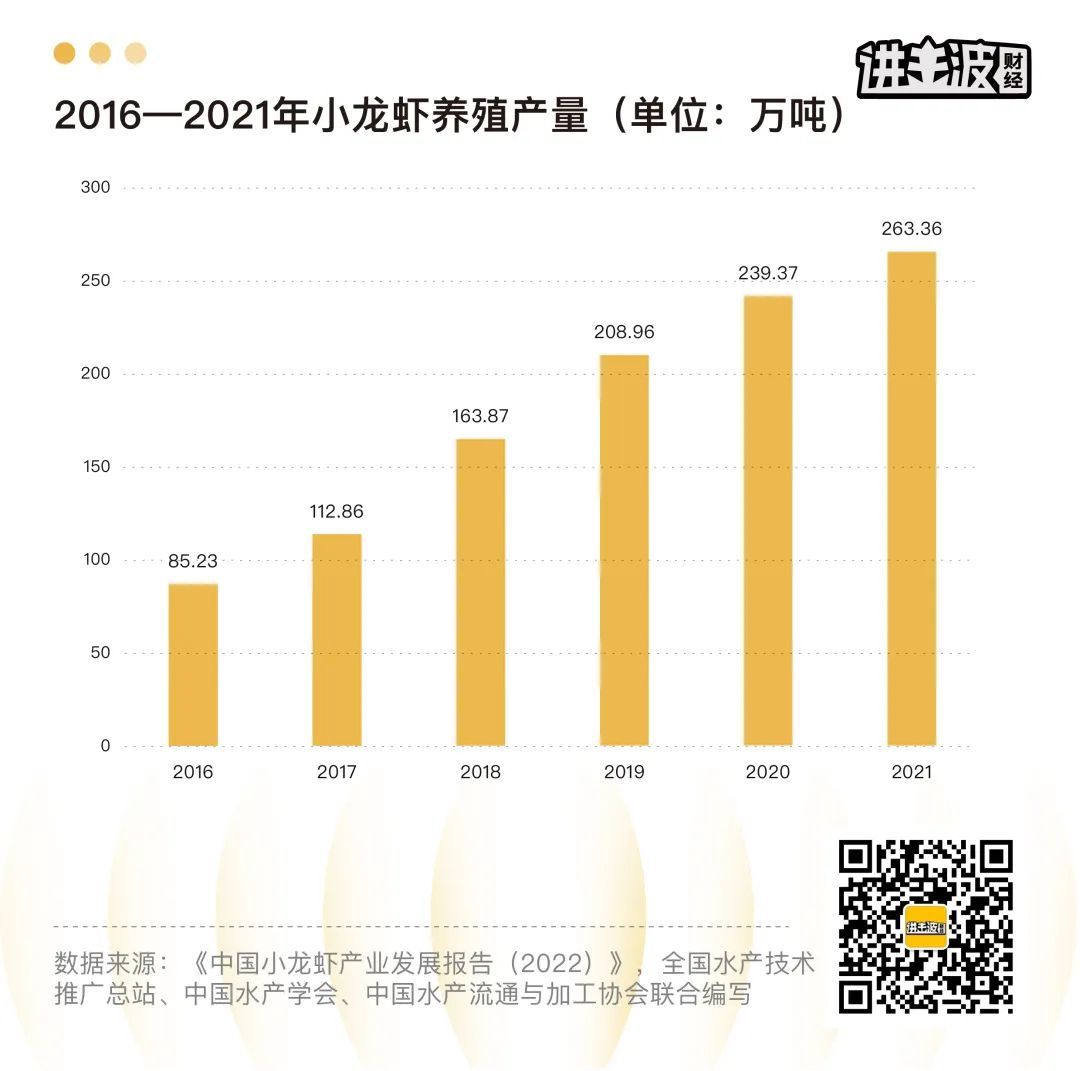 据《中国小龙虾产业发展报告(2022)》显示,2021年中国小龙虾产业总值已经超过4221亿元,养殖产量逐年上升。