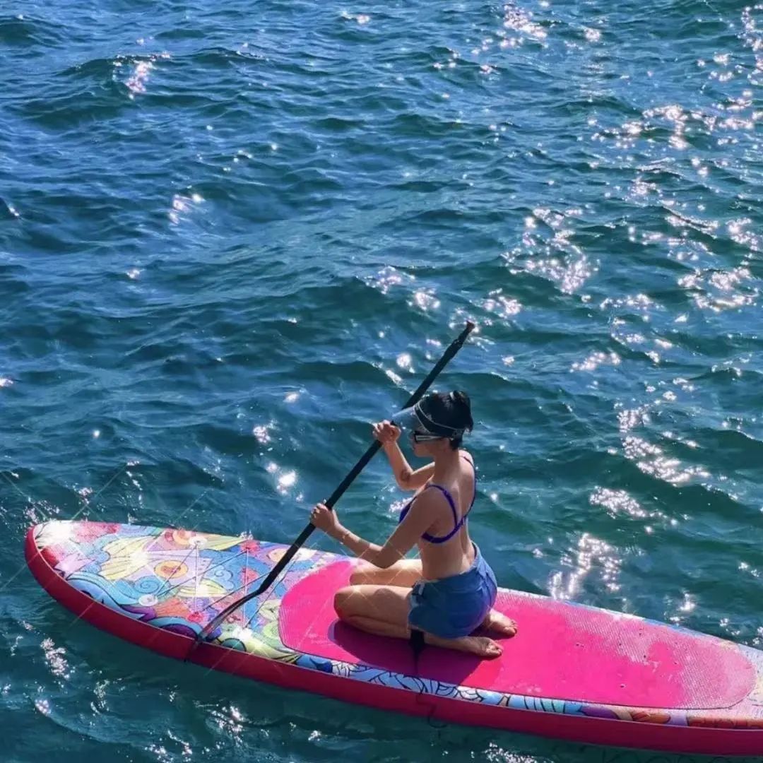 平衡性适应后练习转弯,侧划,板上行走,板上转身,板上瑜伽,拼板花、桨板航拍、桨板美人鱼、桨板撕名牌等等,乐趣多多。