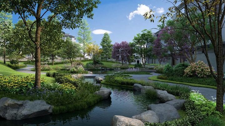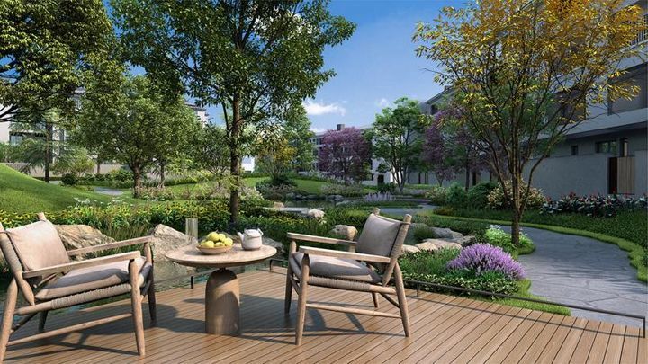 遵循大地的启示,诗意连结出四个各具风情的组团庭院。为归家打造深刻的记忆感。你可以在密植成片的乌桕林中真切感受四季的变化,也可以在造型古朴的水景平台旁感受内敛侘寂美学,在巷道空间中体验生动的烟火气,在蓝花楹树下与友人驻足交谈……生活不必远游,居家便是一场度假。