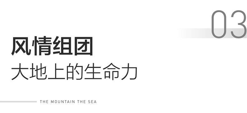 那山那海是苍山洱海之上的理想城邦,它是一种动态的、勃发的生命状态,不仅重新审视自然与居住空间的关系,也重构这片山海的浪漫诗意。在景观规划中,那山那海浓缩大理的独特韵味,延续苍山自然的山林肌理,利用18米的南北高差,将苍山洱海的自然风貌提炼为当代的设计语言,把山林风物写入园林景观之中,打造出原生坡地之上的大理想聚落。