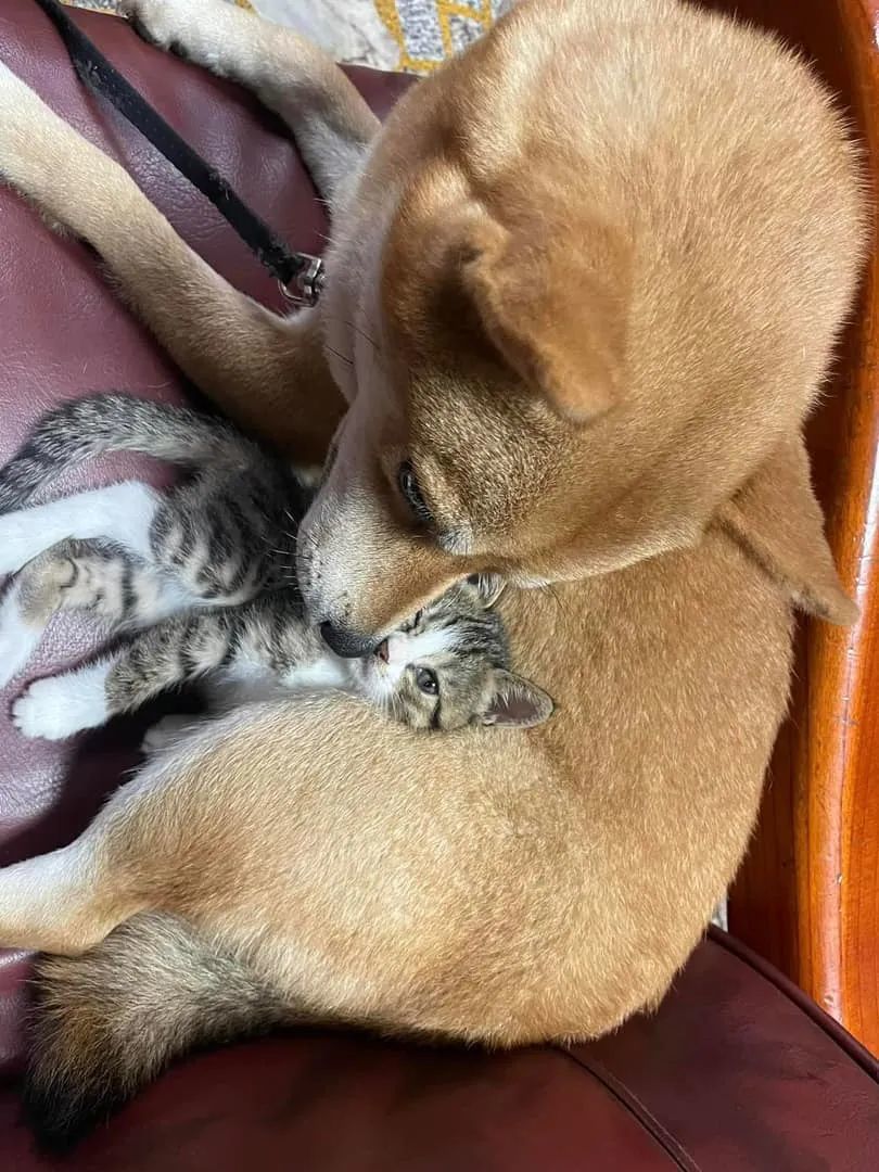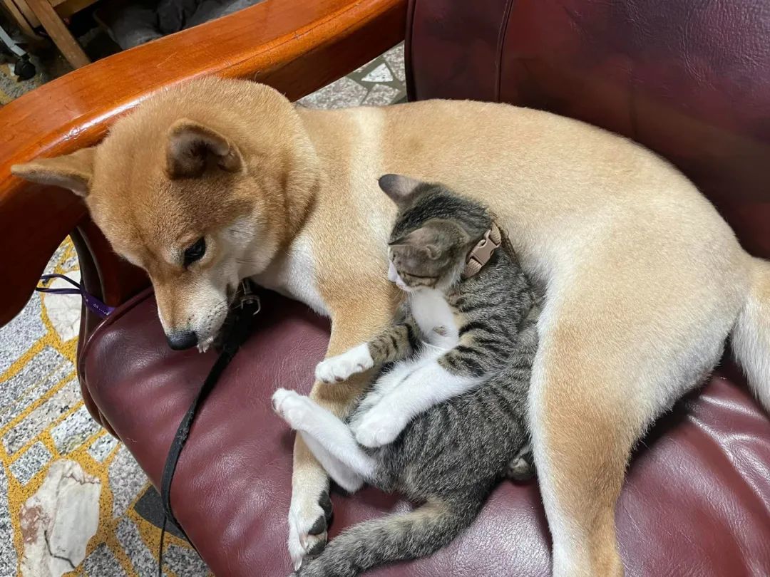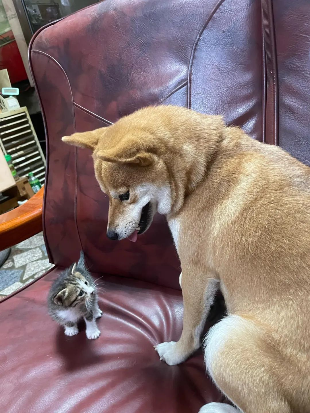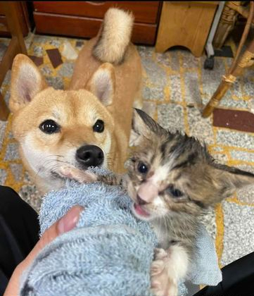 但家中还有一只3岁的柴犬,叫Q妹,一开始网友还有些忐忑,怕Q妹不开心,不接受小猫。