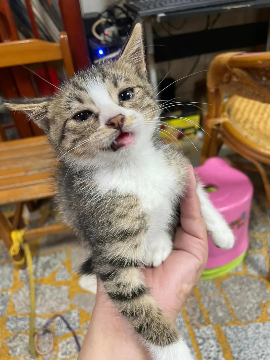 就这样,差点丧命于街头的小奶猫重获了新生,成了新的家庭成员,网友为它取名“卷卷”~