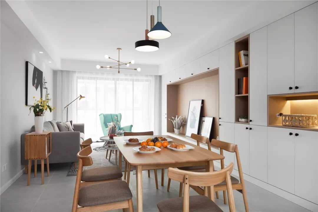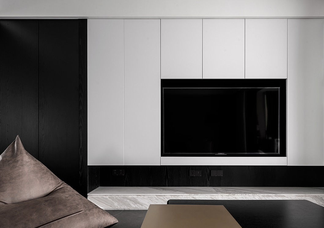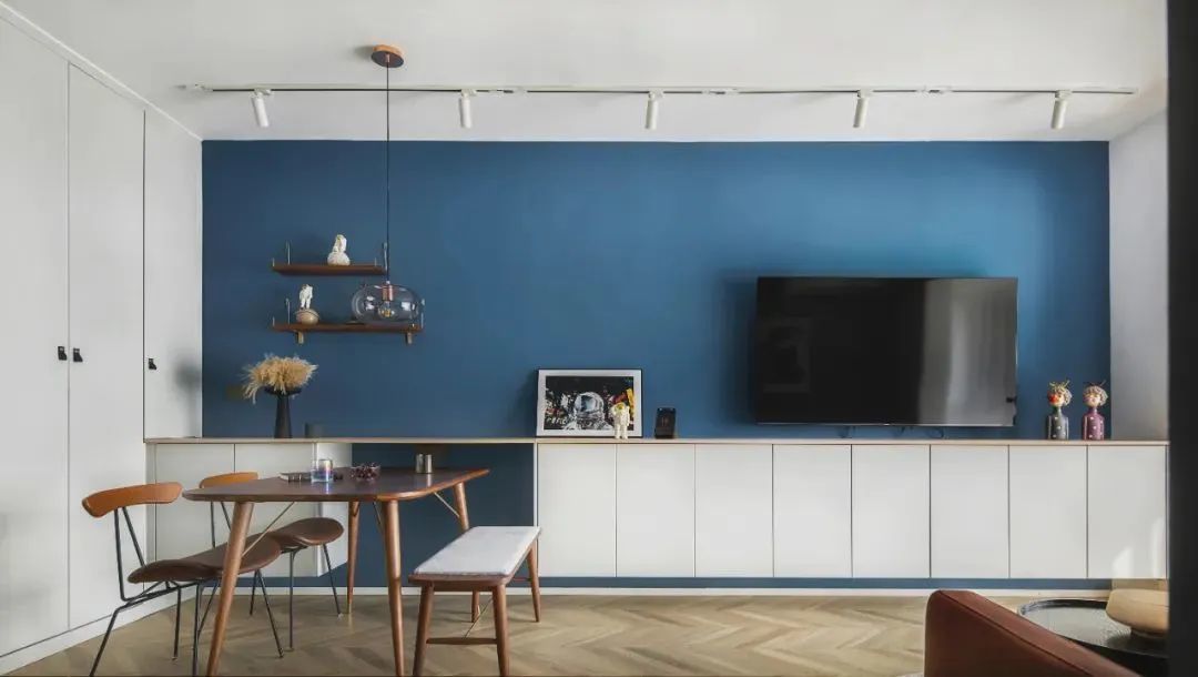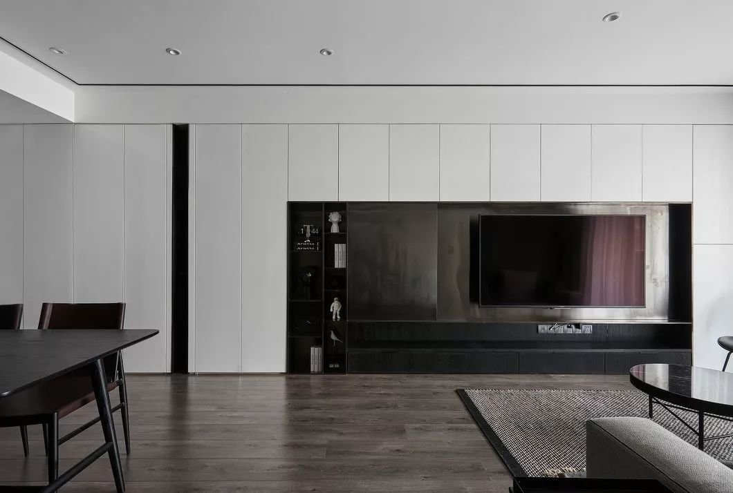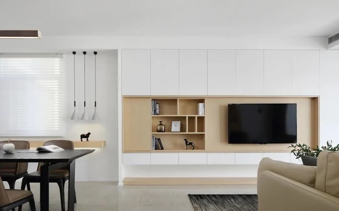电视背景一般是一整面墙,如果做成收纳墙的话,收纳能力不可小觑。