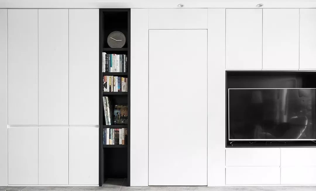 如今房价越来越贵,蜗居生活收纳是个大问题,家里的每一寸都必须合理利用,可以把收纳空间放到电视背景墙上。