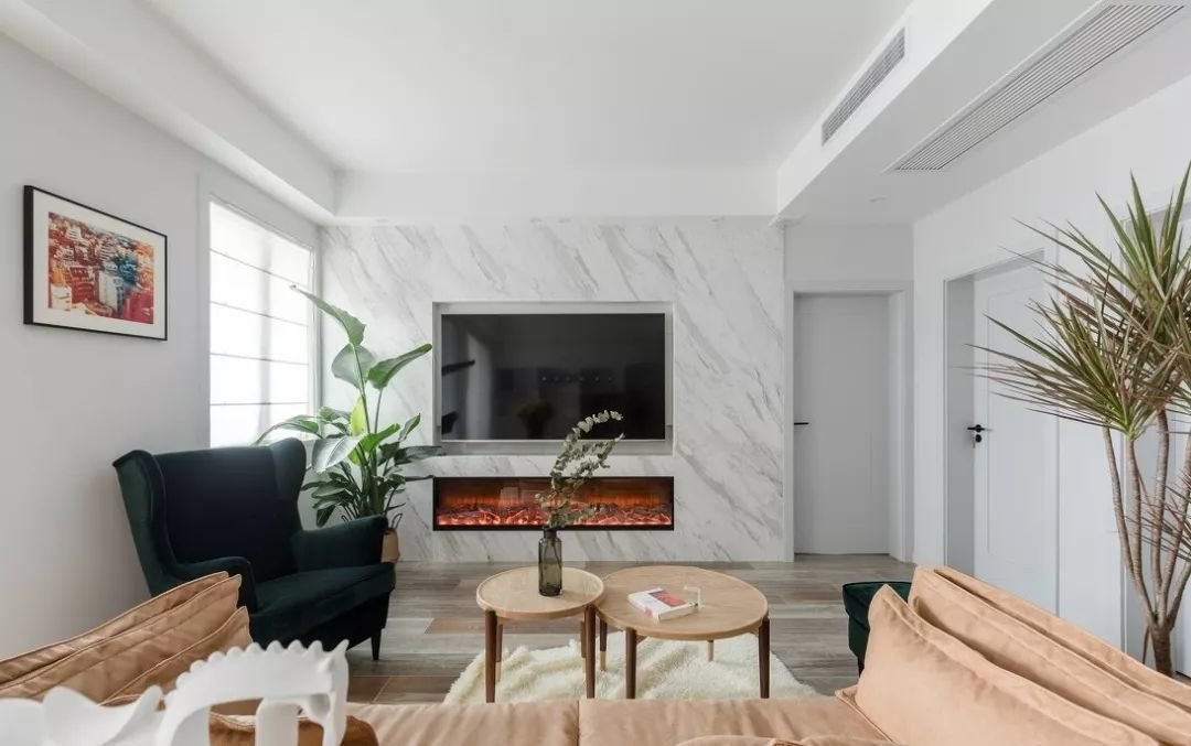 电视功能弱化,现代和北欧风格大流行的情况下,立面做复杂造型的也越来越少,所以弱化电视背景或者简约电视墙也成了趋势。