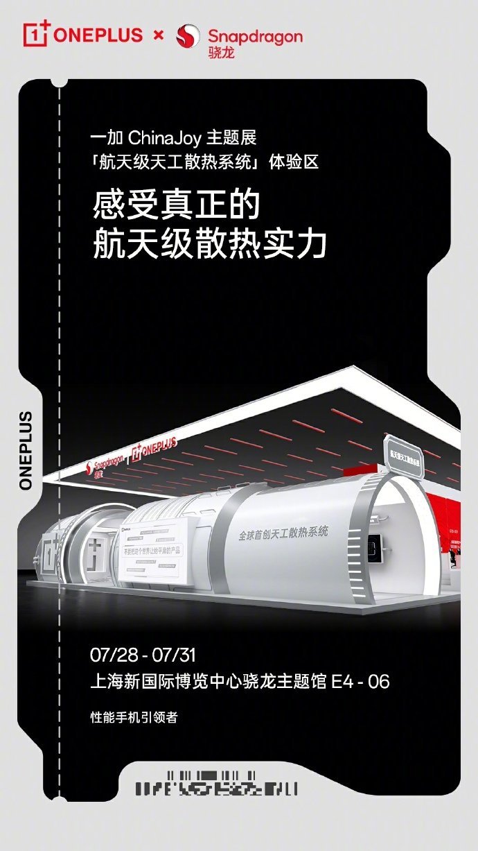 7 月 26 日消息,一加正式宣布在 ChinaJoy 2023 中的神秘装置区命名为「航天级天工散热系统」体验区,在这里将会体验到一加全球首发的散热技术。
