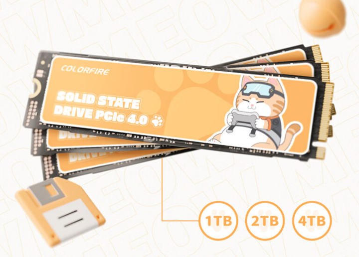 七彩虹旗下COLORFIRE现已推出了MEOW系列高速固态硬盘ME700,目前该款产品已经在国内平台上架开售,拥有1TB,2TB,4TB版本可选,首发到手价格分别为349、589、1099元。