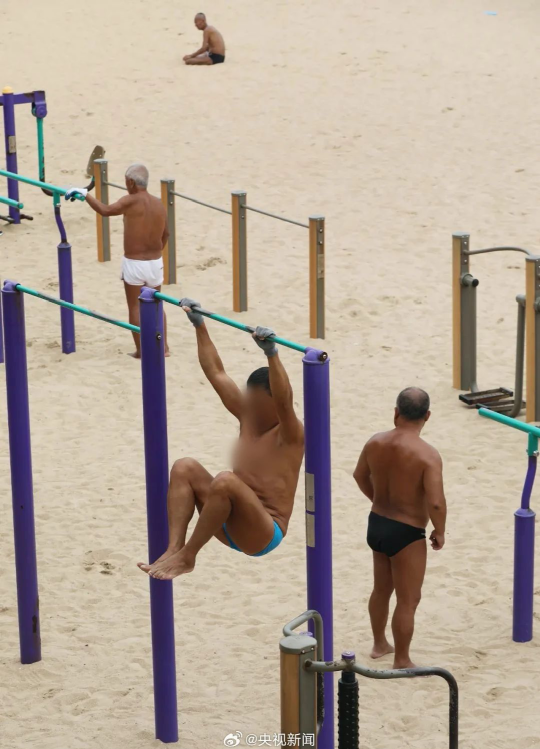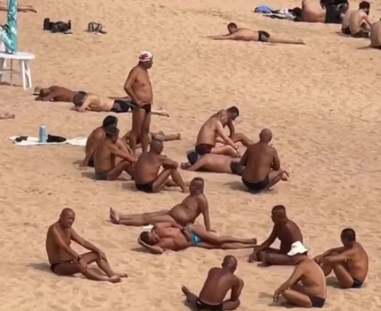 一到夏天,大爷们就迅速占领海滩,享受日光浴。