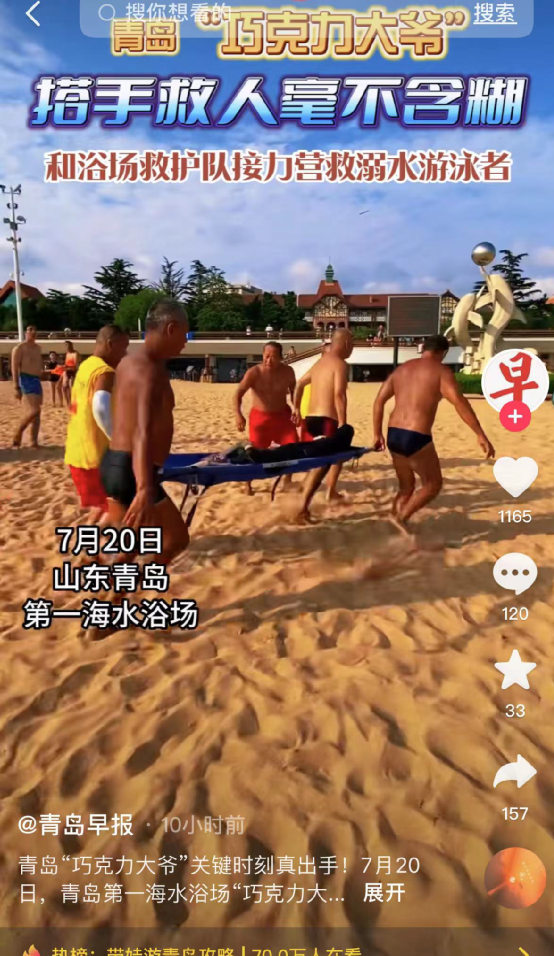 对青岛人来说,这一海滩的大爷,就是满满的安全感。
