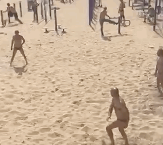 几个人凑一块,就是一场精彩的沙滩排球。