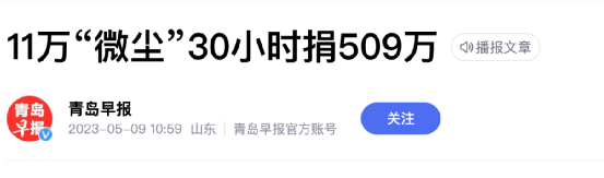 30个小时,线上11万人参与,募集善款超500万。