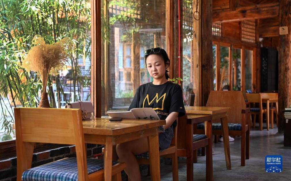 7月25日,游客在陕西省汉中市留坝县城老街上的留坝书房民宿内休闲。
