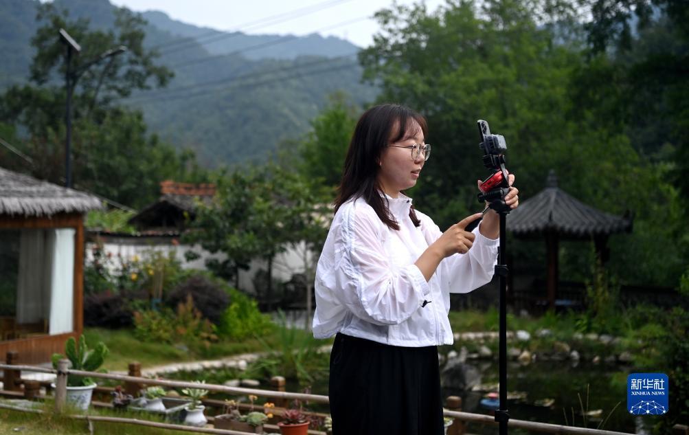 7月24日,陕西省汉中市留坝县紫柏街道大滩村云山阅民宿内,工作人员在进行线上直播推介。