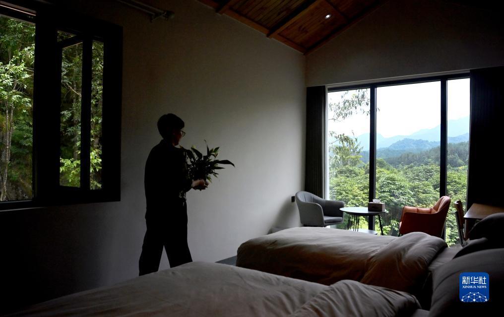7月24日,陕西省汉中市留坝县火烧店镇望星台村松间民宿内,工作人员在整理房间。