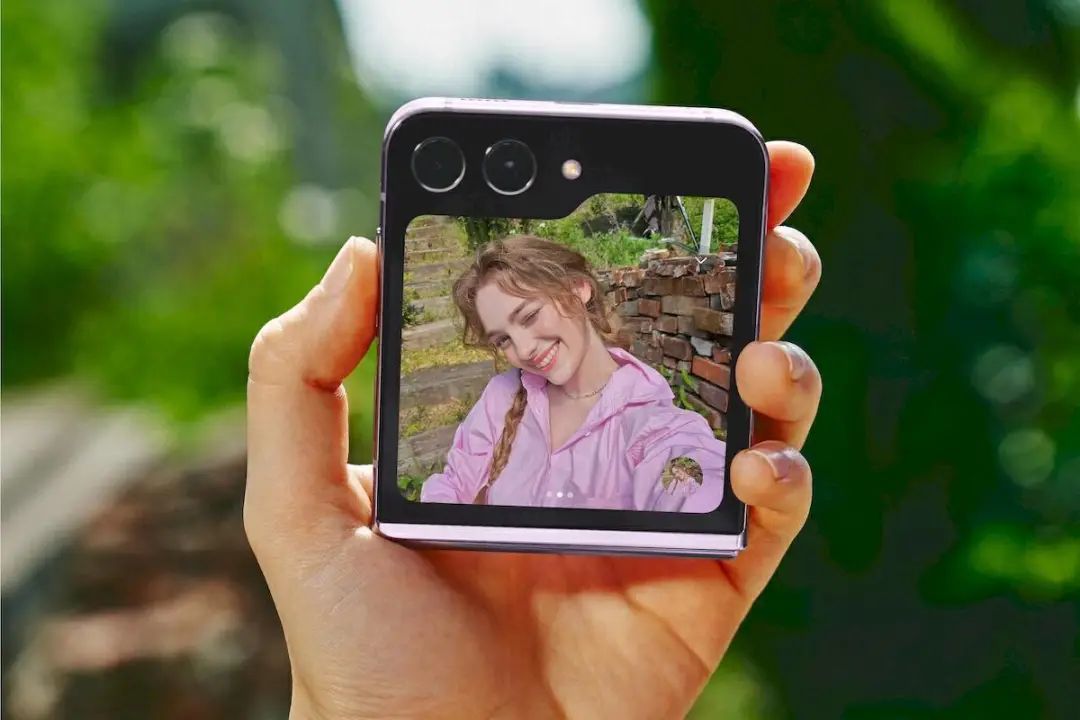 3.4 英寸的 Flex Window 与新的 Flex Mode 铰链完美配合,提供了更好的拍照体验,还可以让用户在不打开设备的情况下查看图片、调整颜色或删除图片。拍照方面,Galaxy Z Flip 5 配备了一颗 1000 万像素的自拍摄像头,光圈为 f / 2.2,像素尺寸为 1.22 微米,视角为 85 度。在外屏旁边有两颗摄像头,其中广角摄像头分辨率为 1200 万像素,光圈为 f / 1.8,具有双像素自动对焦、光学防抖、像素尺寸为 1.8 微米,视角为 83 度。另一颗 1200 万像素的超广角摄像头光圈为 f / 2.2,像素尺寸为 1.12 微米,视角为 123 度。