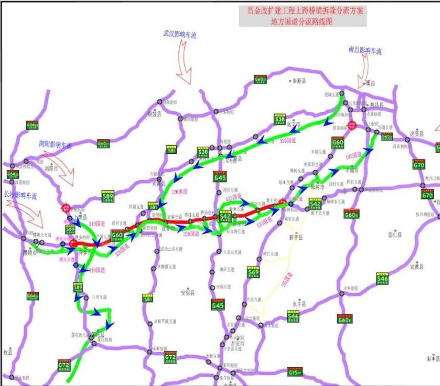 4.新余枢纽一G45大广高速一上高枢纽一S38昌栗高速一南昌/鹰潭方向。
