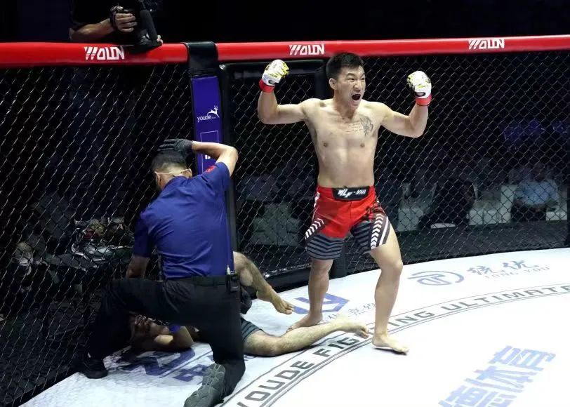 对手肯扎耶夫却再次尝试了抱摔,反而被张庆贺反压制在地面,不断输出地面砸拳,最终张庆贺首回合便以地面砸拳TKO拿下胜利。