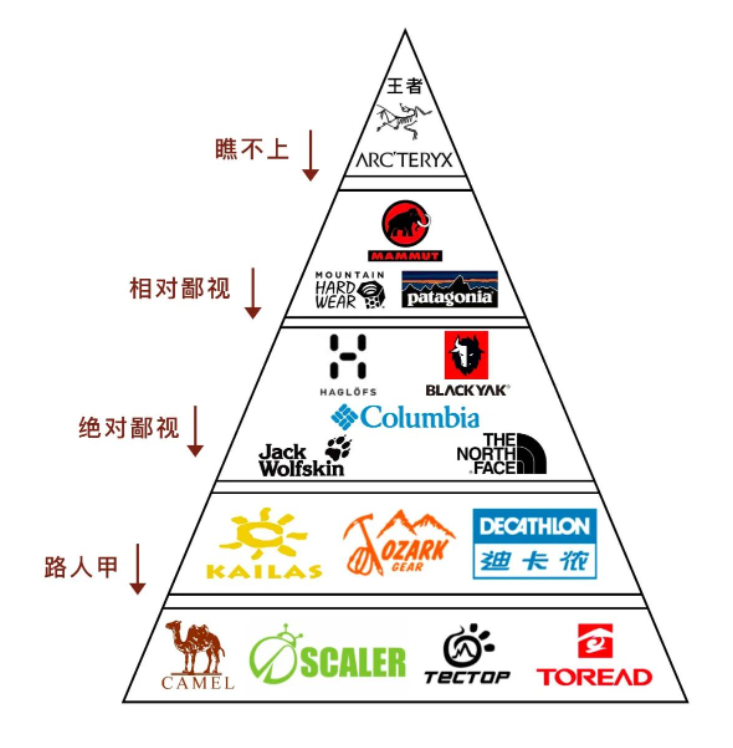 始祖鸟在户外服装鄙视链的金字塔图里,始终处于顶端。