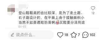 不防滑的底部,是因为登山鞋鞋底的轮胎式设计,是为了走士路、石子路设计的,在平面上由于接触面积小不如普通鞋防滑。