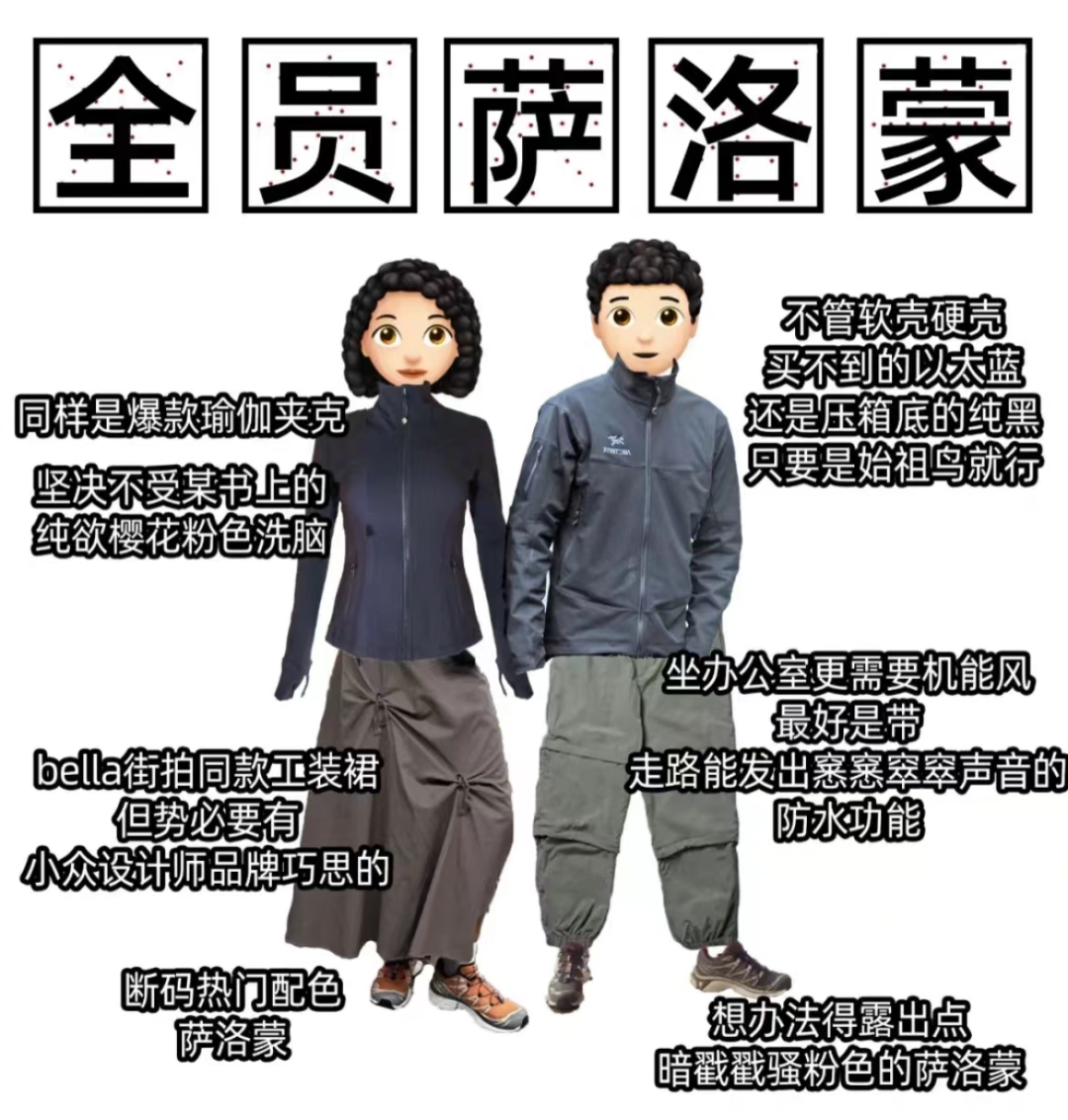 为了穿萨洛蒙通勤,打工人甚至秉持着,改变不了你,就改变自己的原则,开始萨洛蒙穿搭。