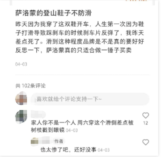 比如萨洛蒙爆火后,很多人跟风买了鞋,却发现有很多槽点: