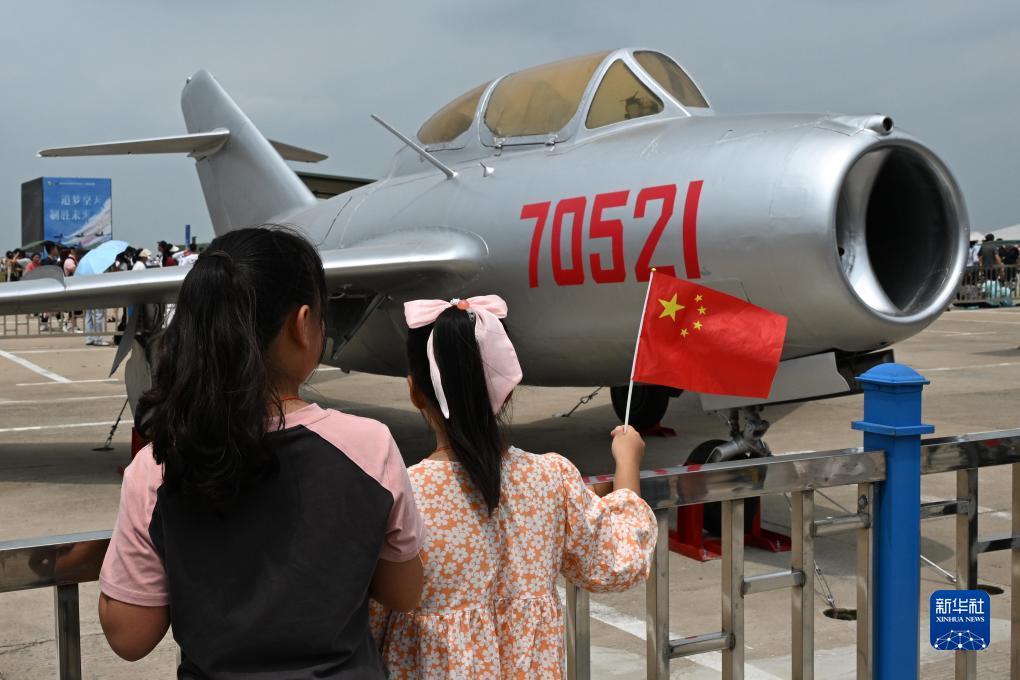 7月27日,在空军航空开放活动·长春航空展首个公众日,观众在观看米格-15飞机。