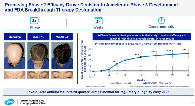 最近,美国食品和药物管理局(FDA)批准了辉瑞的利特昔替尼(Ritlecitinib)的上市,该药物可以用于治疗12岁以上的重度斑秃患者。
