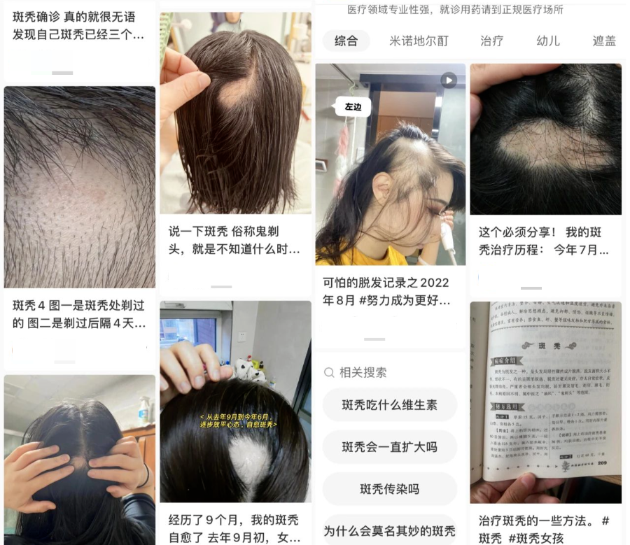 ▲小红书上有关斑秃的分享帖