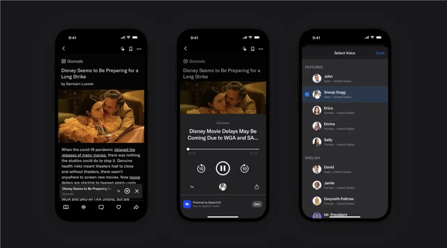 Artifact 用户只需单击故事底部的小图标即可开始听到默认的“John”声音。对于那些不介意听假声音但甚至没有时间的人来说,它也默认为1.5倍速度。除此之外,Artifact 发言人 Robby Stein 告诉我们,有超过30种声音可供选择,其中包括一些基于史努比狗狗 (Snoop Dogg)和格温妮丝·帕特洛 (Gwyneth Paltrow) 的相当微小的人工智能声音。