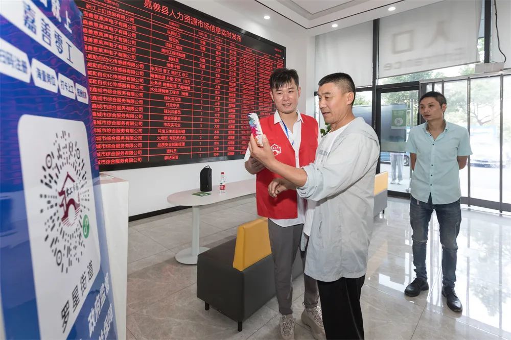 在嘉善长三角零工市场服务大厅,电子屏上不断滚动着最新的招聘信息,吸引不少求职者驻足。