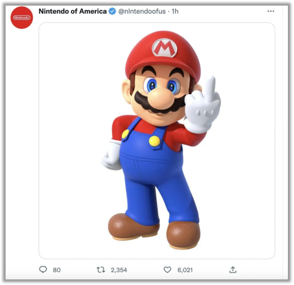 比如一个带有认证的任天堂官方账号,发了一张国际友好手势的图片。