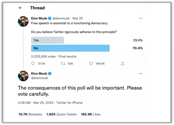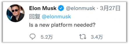 当时投票的网友们肯定没想到,他说的这个新平台,是打算花440亿美元把人家推特买下来。