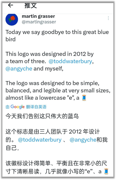 蓝鸟logo设计者Martin Grasser把概念线稿都作为最后的纪念放出来了。