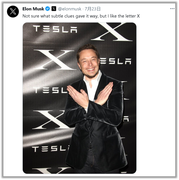 特斯拉的车,叫Model X,成立了新公司xAI自然也要带x。